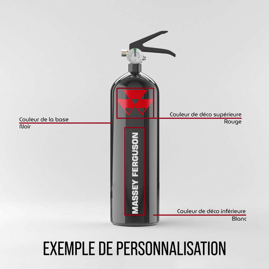 2. Personnalisation Traditionnelle : À l’image de la variété d’équipements offerte par Massey Ferguson, cet extincteur vous permet de choisir la couleur de la base, de la décoration supérieure et de la décoration inférieure pour créer un ensemble qui reflète votre style unique.