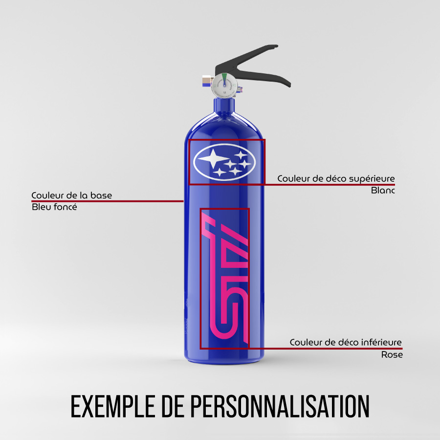 2. Personnalisation Sportive : À l’image de la personnalisation offerte par Subaru, cet extincteur vous permet de choisir la couleur de la base, de la décoration supérieure et de la décoration inférieure pour créer un ensemble qui reflète votre style unique.